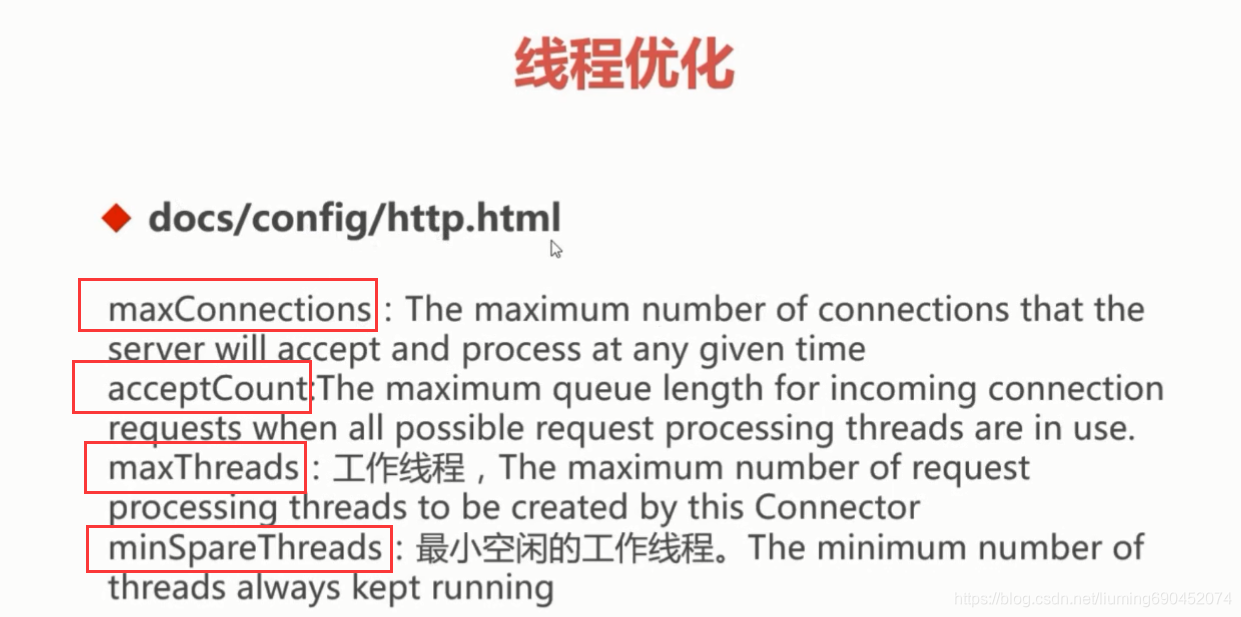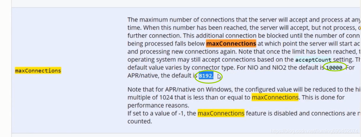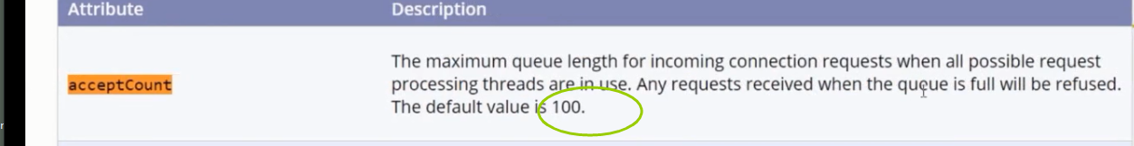 acceptCount: 当超出最大连接数,先把多余连接的压到队列,默认100,配大了意义不大,因为 连接数处理不过来了