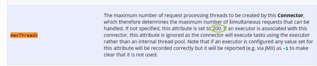 maxThreads: 工作线程,同一时间点,同时处理的并发请求 默认200