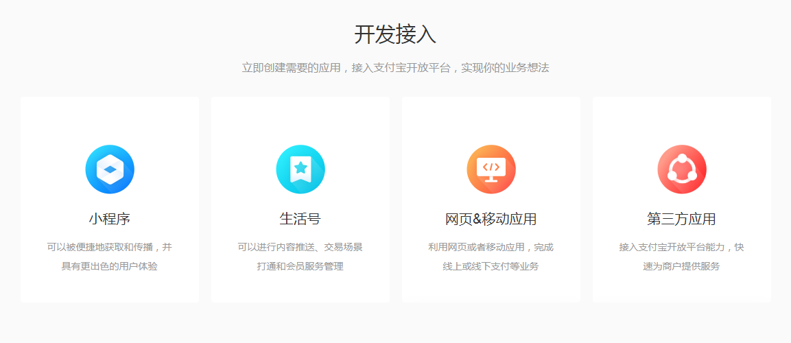 蚂蚁金服支付宝开发者中心 网址如下:https://developers.alipay.com/developmentAccess/developmentAccess.htm
