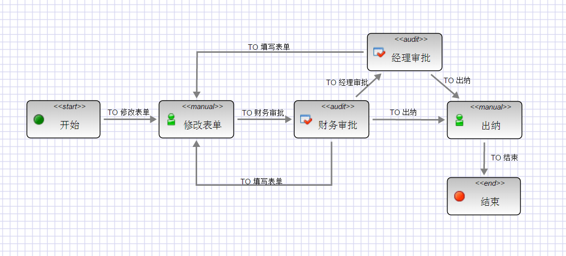 本次发版的AEAI EM费用报销管理系统流程审批部分与AEAI BPM流程集成平台相结合,报销人员在表单填写完成后,表单将提交到工作流上,这时实际业务操作人员可以发起审批流程,执行同意、驳回等业务操作。具体流程图如下: