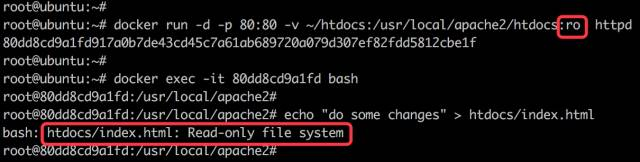 bind mount 时还可以指定数据的读写权限,默认是可读可写,可指定为只读:
