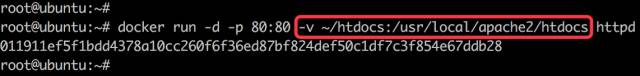 docker run -d -p 80:80 -v ~/htdocs:/usr/local/apache2/htdocs httpd