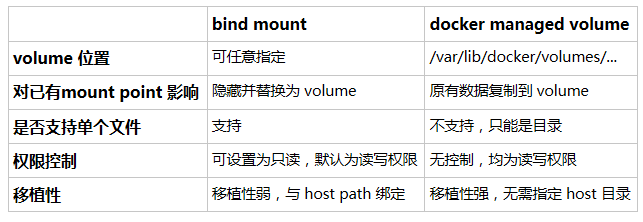 bind mount 需要指定 host 文件系统的特定路径,这就限制了容器的可移植性,当需要将容器迁移到其他 host,而该 host 没有要 mount 的数据或者数据不在相同的路径时,操作会失败