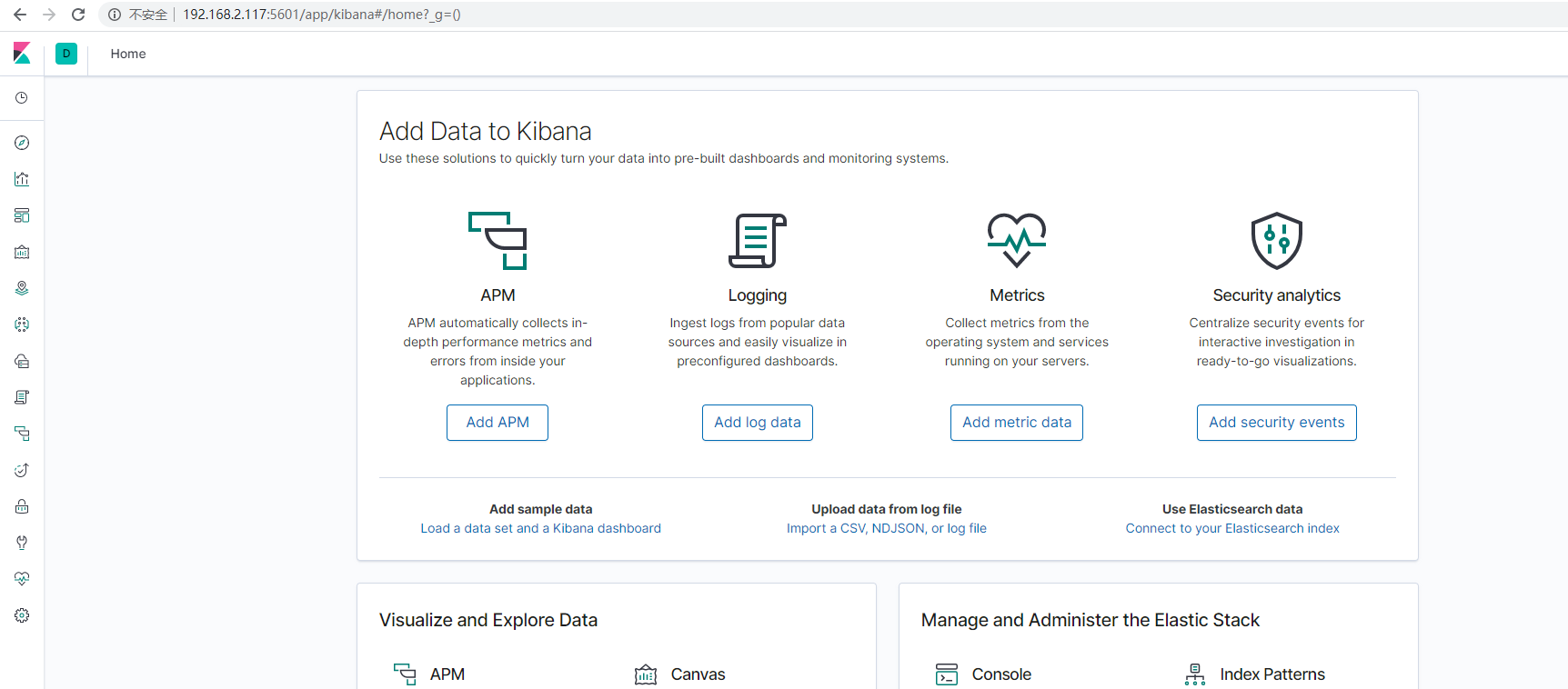启动以后可以打开浏览器输入http://localhost:5601就可以打开kibana的界面了。