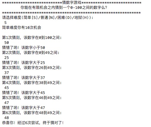 print('请选择难度(简单[S]/普通[N]/困难(D)/地狱(H)):')