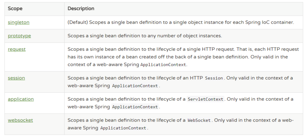 singleton:单例,IOC容器中只有一个该类对象,默认为singleton