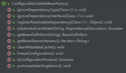 此接口只提供了一个方法,方法参数为ConigurableListableBeanFactory,该参数类型定义了一些方法