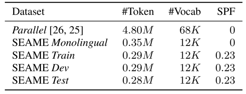 平行语料库使用OpenSubtitle [25] and TedTalk[26],因为它们大多是自发语音,据说具有高质量的句子对齐效果,最重要的是有大量可用。
