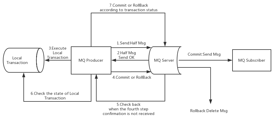 - TransactionStatus.RollbackTransaction: 回滚事务,它代表该消息将被删除,不允许被消费。