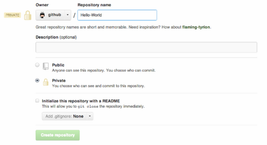 2)填写的仓库的信息;例子:Hello-World