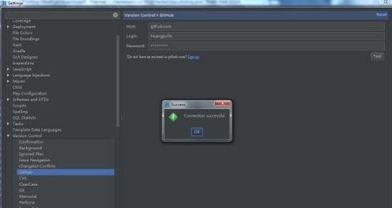 填入你的Github账户信息,点击”Test”按钮测试连接,若链接成功会提示”Connection successful”。保存完成。