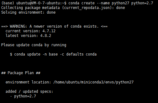比如在base环境中,Python版本为3.7,如果需要2.7的环境可以新建。