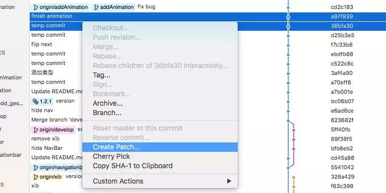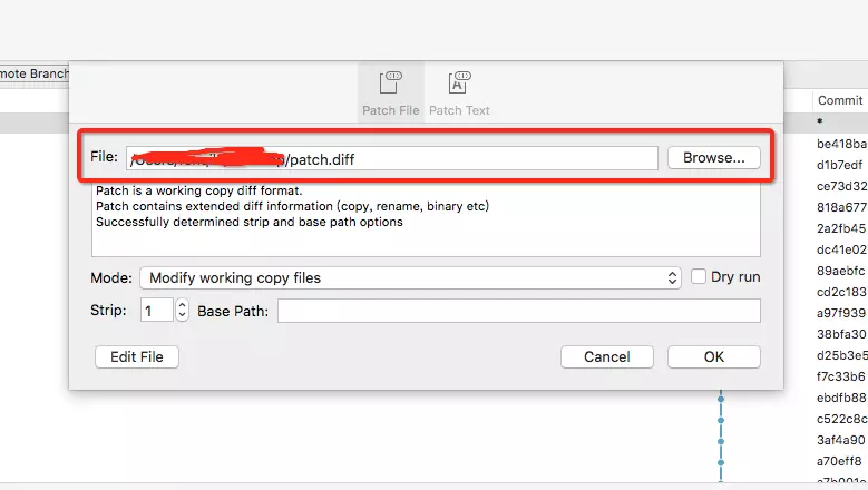 选择SourceTree,在屏幕顶部选择Aciotn-Apply patch