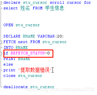 - 游标结果集由定义游标的SELECT语句返回的行的集合