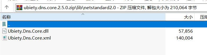 用解压软件解压,最后里面有个文件夹 lib\netstandard2.0\,里面正是有我们需要的Ubiety.Dns.Core.dll,然后把这个文件拷贝到