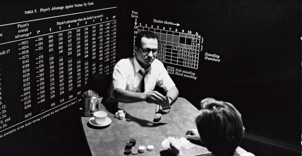 深色头发,一刻也闲不住的嘴,Thorp看起来和那些老想着在内华达各赌场赢取大把筹码的年轻人没什么两样,但绝不同。Thorp是个不折不扣的天才。其时,他已经在教书之余发现了21点计牌策略。