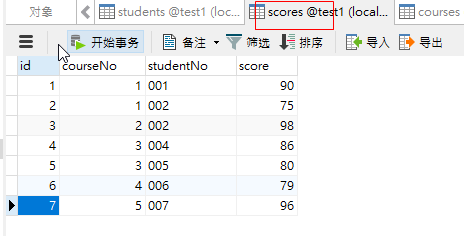 -- SELECT a.name,c.score FROM students a,scores c WHERE a.studentNo=c.studentNo