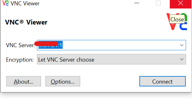 对于已练接互联网的linux: 启动tigervnc-server,命令如下 vncserver 这种方式启动会默认分配桌面,从1开始分配, 如提示设置密码,请设置密码用于vnc login使用 2. VNC login,host后面加桌面号。密码输入step时设置的密码 来源:oschina链接:https://my.oschina.net/hcp/blog/3188890 标签 Linux VNC Server TigerVNC