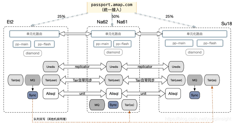 以账号系统为例介绍下高德单元化应用的整体架构。