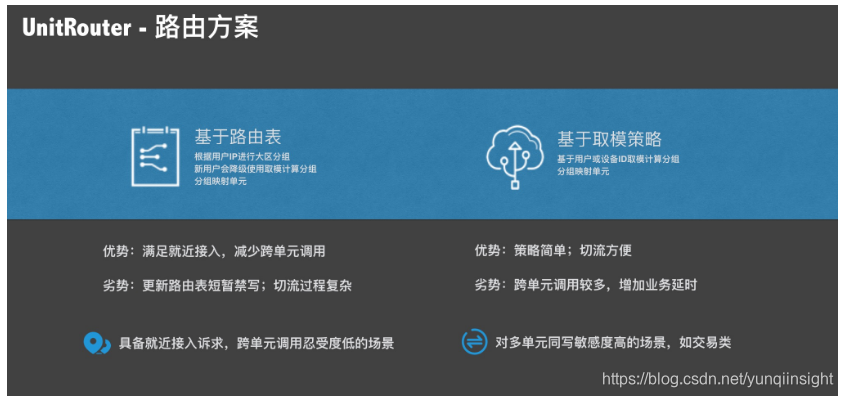 所以,在最终的单元路由实现上我们提供了传统的取模路由,和为降延时而设计的基于路由表路由两种策略。同时,为解无须登录的业务场景问题,上述两种策略除了支持用户ID,我们同时也支持设备ID。