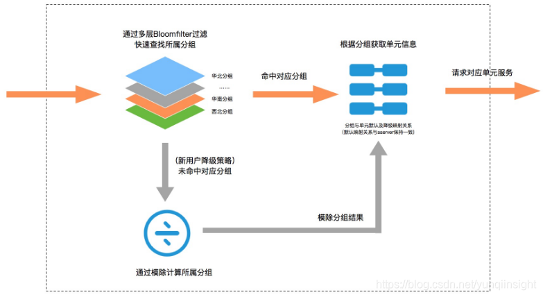 老用户可以通过路由表来查找单元,新用户怎么办?对于新用户的处理我们会降级成取模的策略进行单元路由,直至下次路由表的更新。所以整体上看新用户跨单元路由比例肯定是比老用户大的多,但因为新用户是一个相对稳定的增量,所以整体比例在可接受范围内。