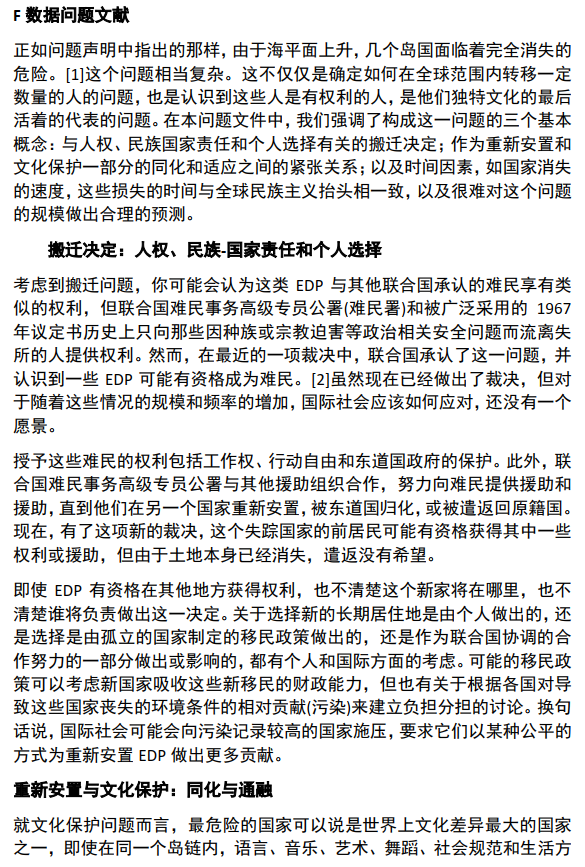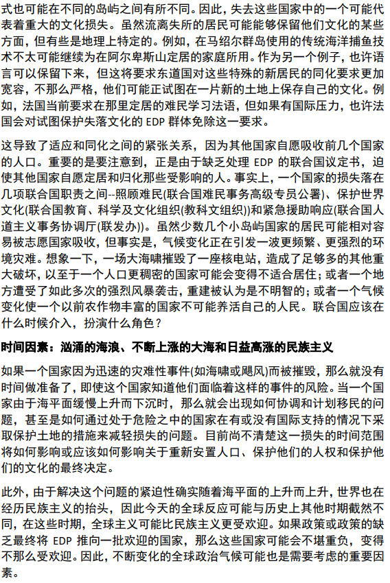该问题也许是开放性问题,提出的安置政策只要保证受威胁人民的自由、妥善即可。而文化与人是分不开的,只要给出合理的移民方案,使得海平面上升的速率与提出政策(移民机制模型)达到拟合。你的模型需要首先假设海平面上升是不可逆的(即不考虑人类的改变使得全球变冷),模拟马尔代夫等国从现有状态逐渐消失的过程,保证这个过程中人口的平衡。 -