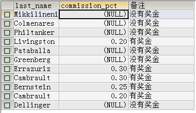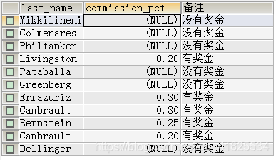 SELECT last_name,commission_pct,IF(commission_pct IS NOT NULL,'有奖金','没有奖金') AS 备注