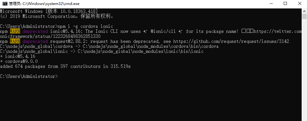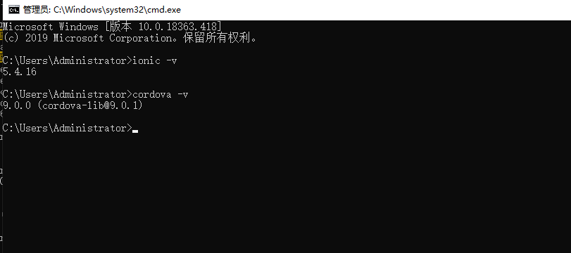 执行完成后,可通过 node -v 和cordova -v 查看安装的版本