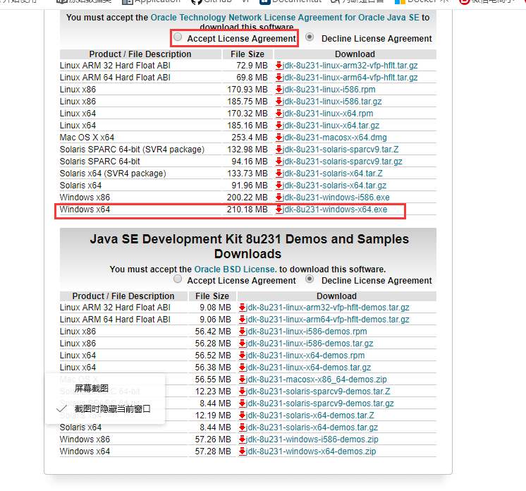 1)下载jdk https://www.oracle.com/technetwork/java/javase/downloads/jdk8-downloads-2133151.htm