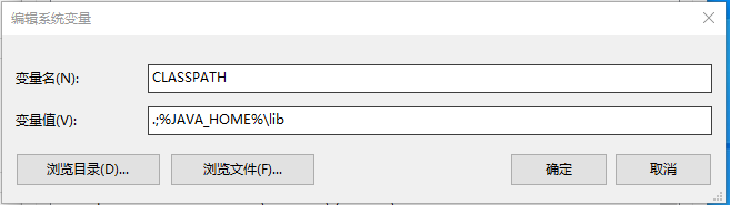 c.系统变量——新建 变量名CLASSPATH,变量值 .;%JAVA_HOME%\lib