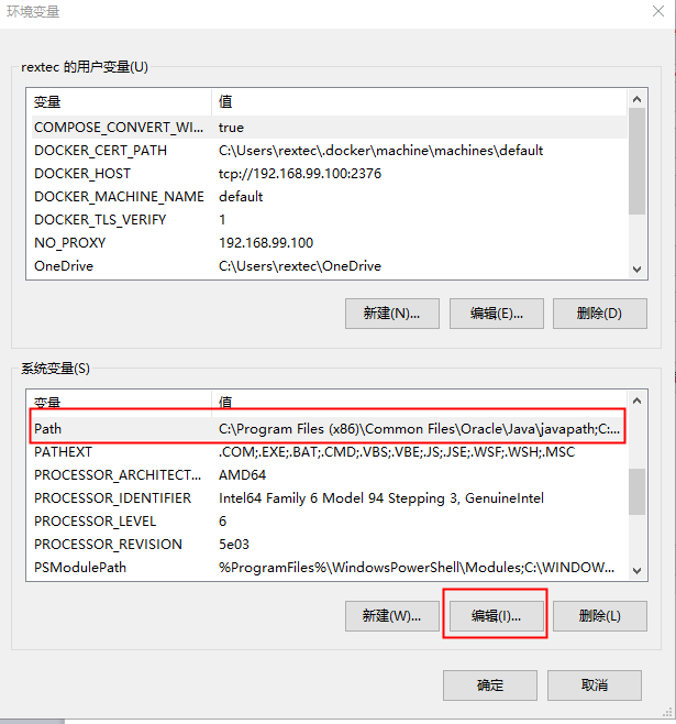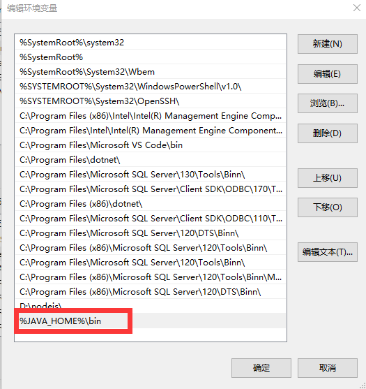 d.选择“系统变量”中变量名为“Path”的环境变量,双击该变量,在原来变量后追加 %JAVA_HOME%\bin