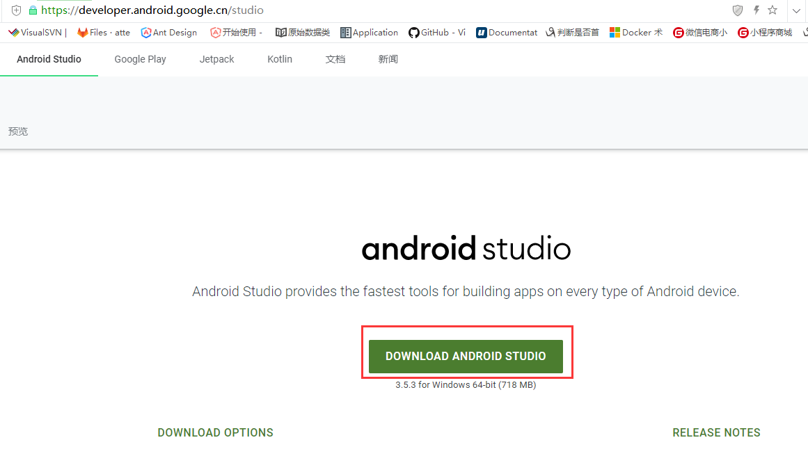 1)下载并安装 Android Studio https://developer.android.google.cn/studio