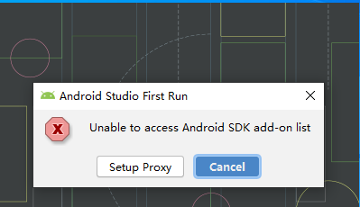 进入Android Studio,出现proxy设置的错误,直接点击cancle,进入下一步 Android SDK的安装