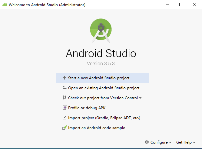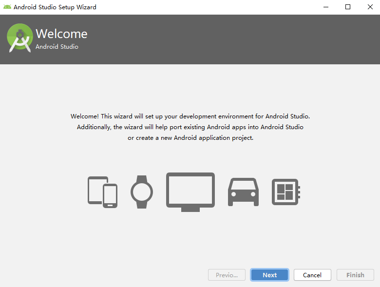 Android Studio 安装完成后,启动(注:第一次进入出现的导入配置页面,不要做任何配置的导入)