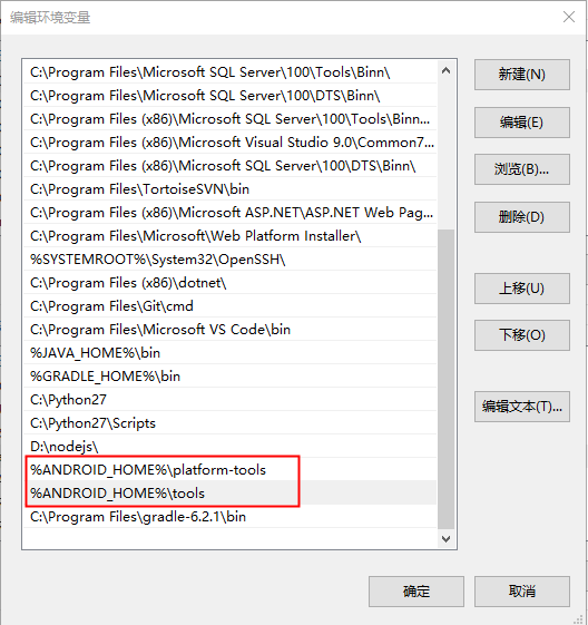 c.系统变量中 找到path ,新建 %ANDROID_HOME%\platform-tools 和%ANDROID_HOME%\tools 两个环境变量