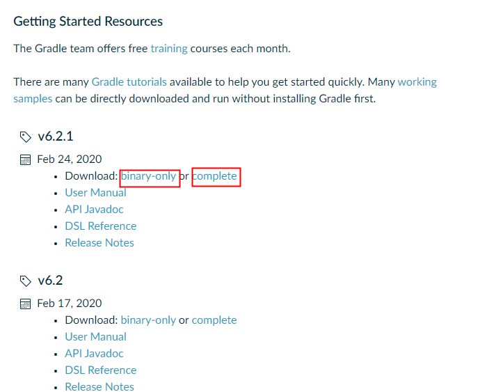 在 getting Started Resources 中,可看到版本,选择版本需要的版本,根据不同情况下载包,我选择的是complete