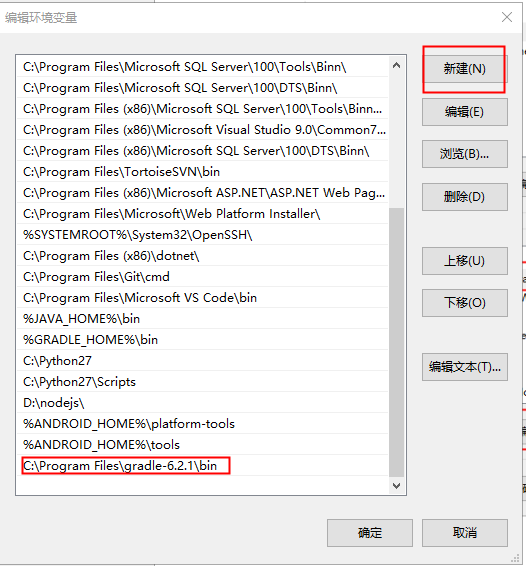 b.在系统变量中,选择Path,再点击编辑,新建 输入值:C:\Program Files\gradle-6.2.1\bin