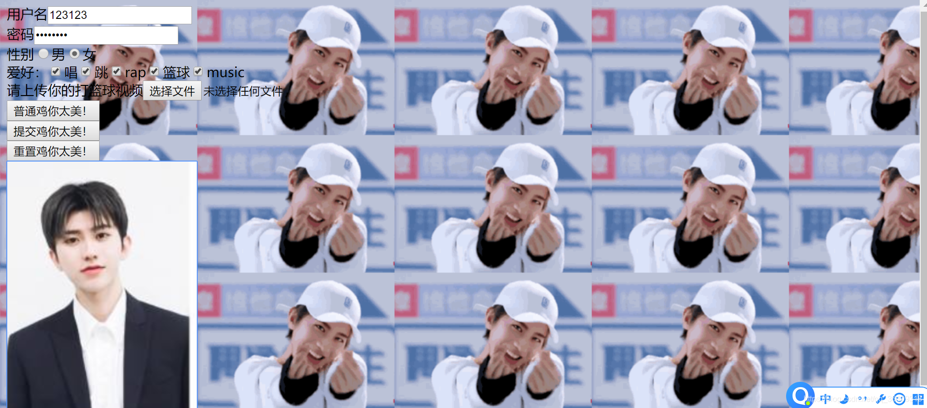 爱好:<input type="checkbox" checked="checked">唱<input type="checkbox" checked="checked">跳<input type="checkbox" checked="checked">rap<input type="checkbox" checked="checked">篮球<input type="checkbox" checked="checked">music