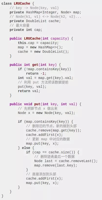 PS:这就是普通双向链表的实现,为了让读者集中精力理解 LRU 算法的逻辑,就省略链表的具体代码。