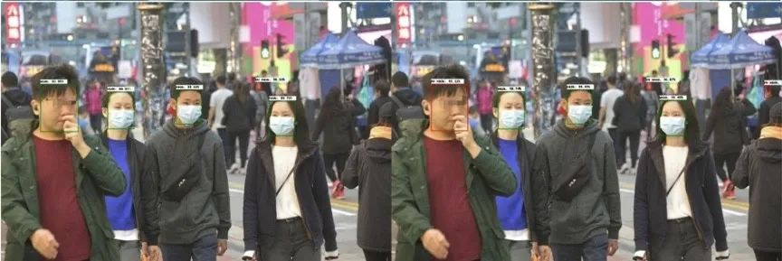 针对用户提出的 badcase 问题,口罩人脸检测与分类模型研发人员也是高度重视,并且迅速开展了 V1.1.0 的优化,增补了更多的数据集,使得训练准确率进一步提升。通过开放接口,增加金字塔策略等方式,使得在各种极端尺寸下检测不到人脸的问题得到改善,召回率也有明显提升。同时,口罩分类模型也经过一周有效的数据迭代,准确率从之前的 96.5% 提升到 97.27%,优化效果对比: