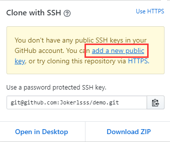 - 在新建好仓库之后,进入到此仓库中,点击 Use SSH