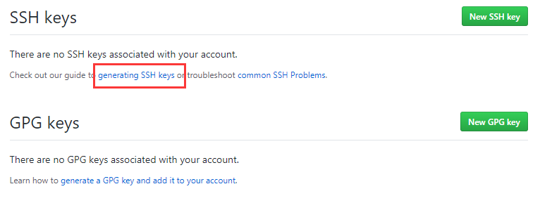 - 分别打开一下两个链接(如果是第一次生成 SSH-key 的话,可以直接打开第二个链接)