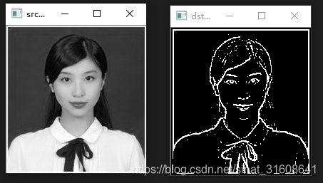 cv::adaptiveThreshold(srcGray, dstImage,maxVal, adaptiveMethod,thresholdType, blockSize,constValue);