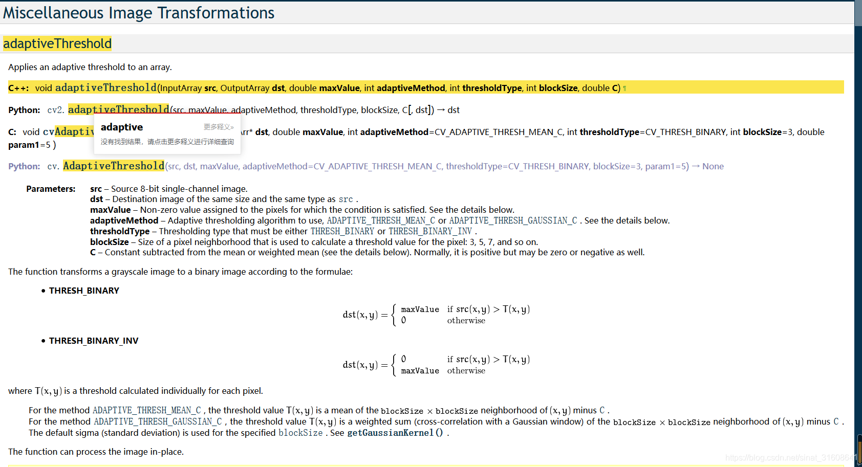 OpenCV中提供了自适应阈值化函数adaptiveThreshold来实现自适应阈值处理、