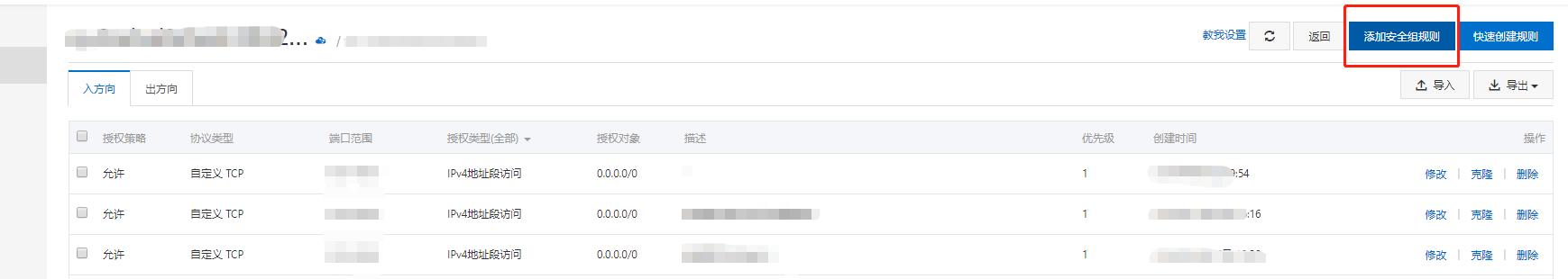 3、点击上图中的“配置规则”,出现下图所示内容【是一些我们以往配置过的端口信息】