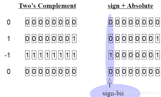 解决方案一:不用补码,用带一位信号位