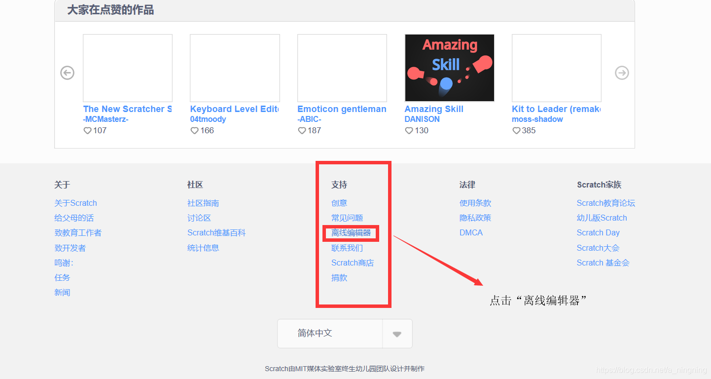 3. 网站中包含了许多优秀的程序作品,我们还是将网页拖动到底部,如(图3.1)位置。点击“离线编辑器”进入下载。
