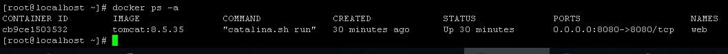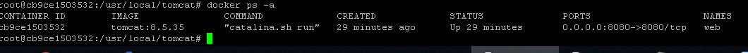 docker run --name web --privileged -v /etc/localtime:/etc/localtime:ro -v /var/run/docker.sock:/var/run/docker.sock -v /usr/bin/docker:/usr/bin/docker -d -p 8080:8080  tomcat:8.5.35