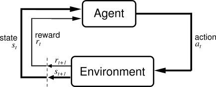第一幅图是介绍强化学习常见的基本原理图,其中: