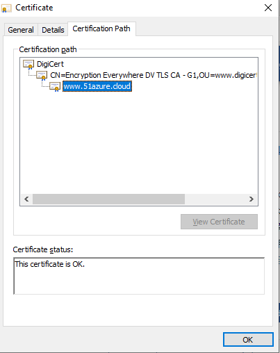 根证书是DigiCert,中间证书是CN=Encryption Everywhere DV TLS CA-G1, 叶证书是 www.51azure.cloud